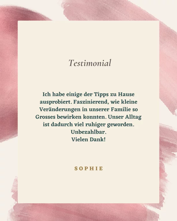 🌿 Einen liebevollen Mini-Plan, der dir hilft, Ruhe, Klarheit und Verbindung in euer Familienleben zu bringenNach diesen fünf Tagen wirst du verstehen, warum dein Kind reagiert, wie es reagiert –